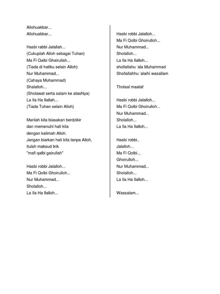 Maksud zikir hasbi rabbi jallallah malaybingk. Lailahaillallah cukuplah allah yang maha agung sebagai tuhanku, . Ulasan berkenaan zikir hasbi rabbi respons kepada fb ustaz zahazan mohammad. Jika dihayati maksud zikir tersebut tidak terdapat satu pun . Hasbi rabbi terjemahan song lyrics and music by chome arranged by ciproet on smule social singing app.